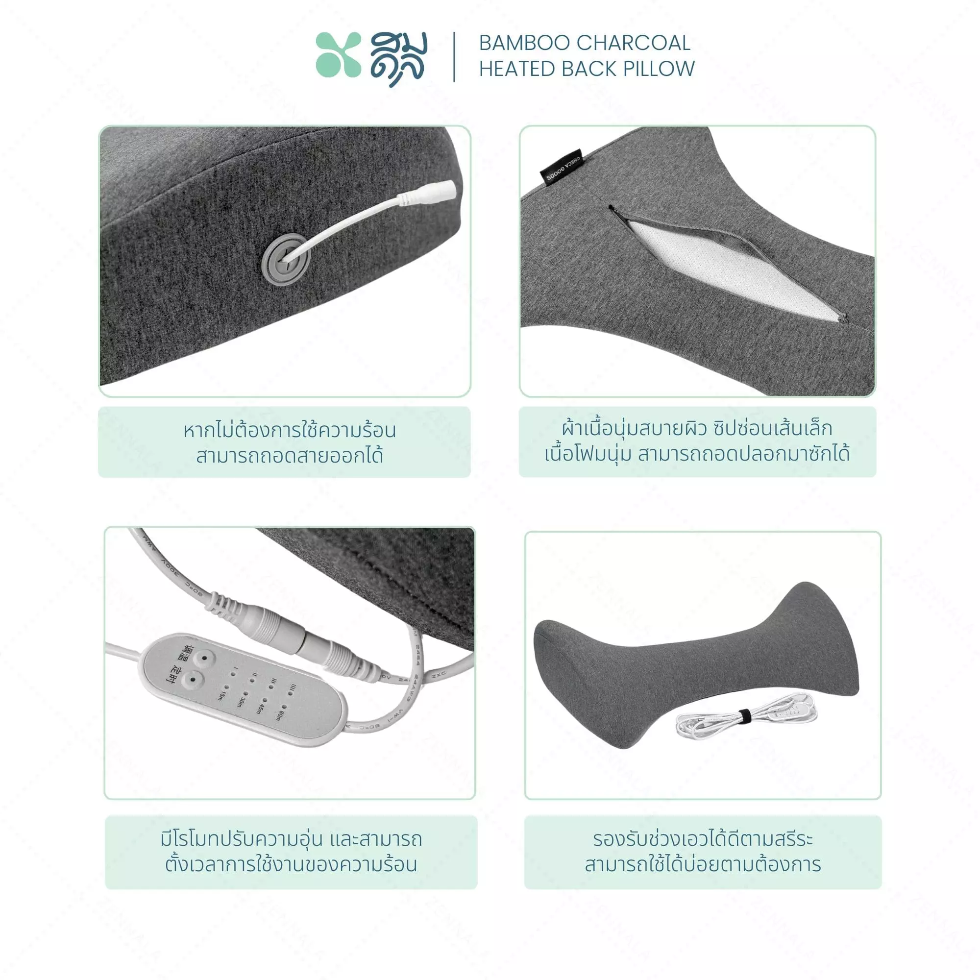 SOMDUL Bamboo Charcoal Heated Back Pillow หมอนรองเอว เพื่อสุขภาพ พร้อมระบบความร้อน