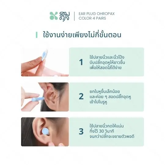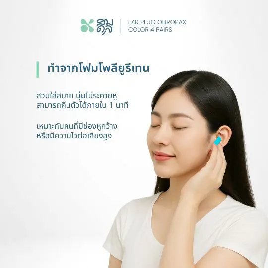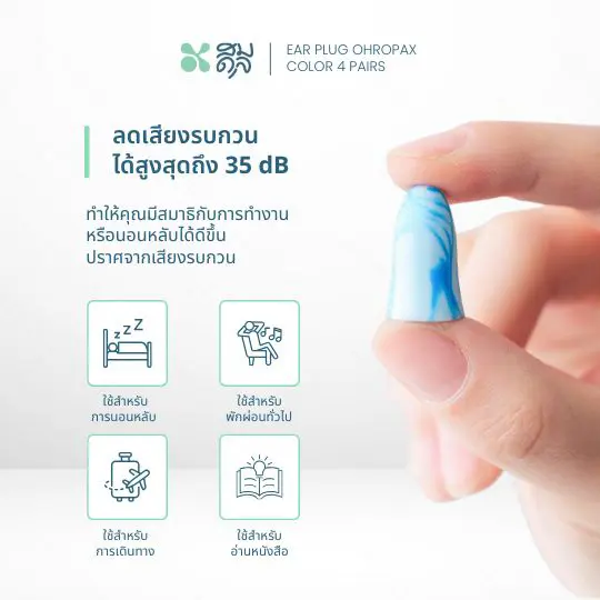 การใช้งาน : ใช้สำหรับลดเสียงรบกวนในที่พัก ที่ทำงาน หรือขณะนอนหลับ
