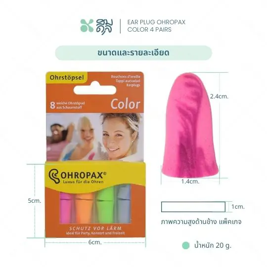 ขนาดปลั๊กอุดหู : 1.4 x 2.4 cm.