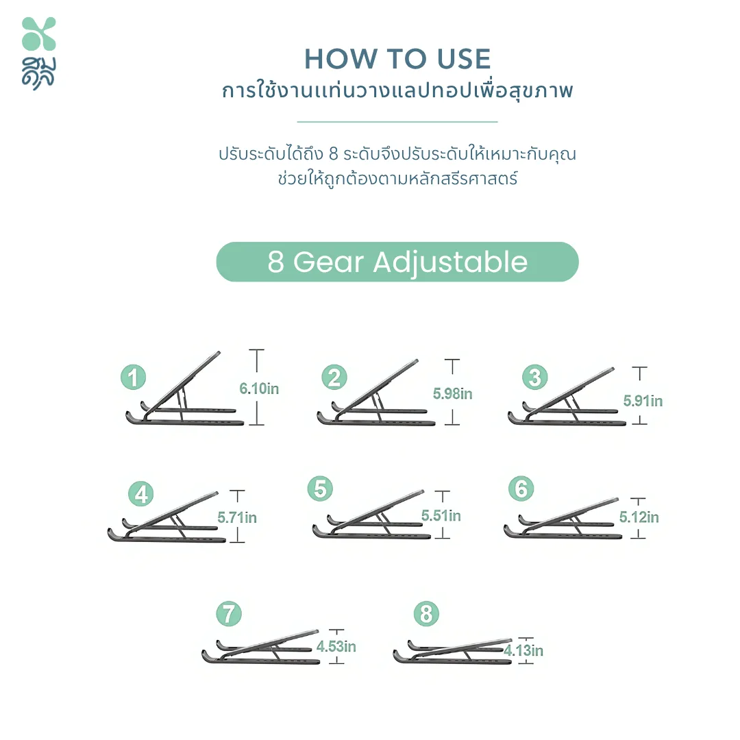 – ขนาดของแท่นวาง notebook ปรับได้ถึง 8 ระดับ