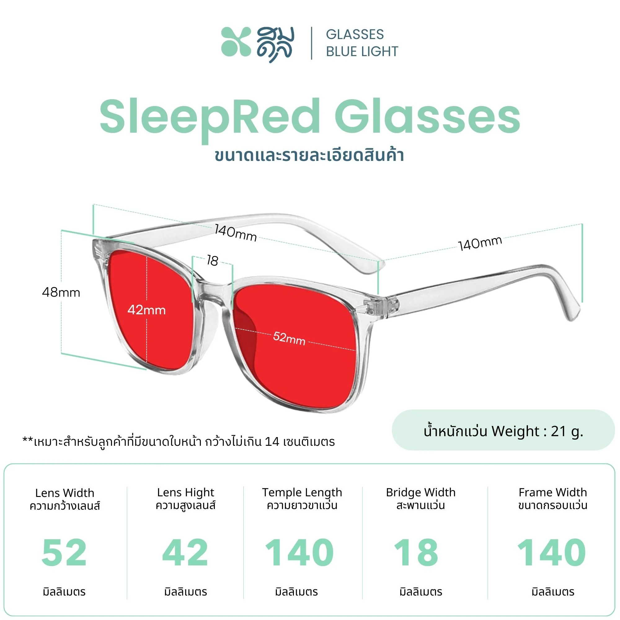 • ความยาวขาแว่น 140 mm