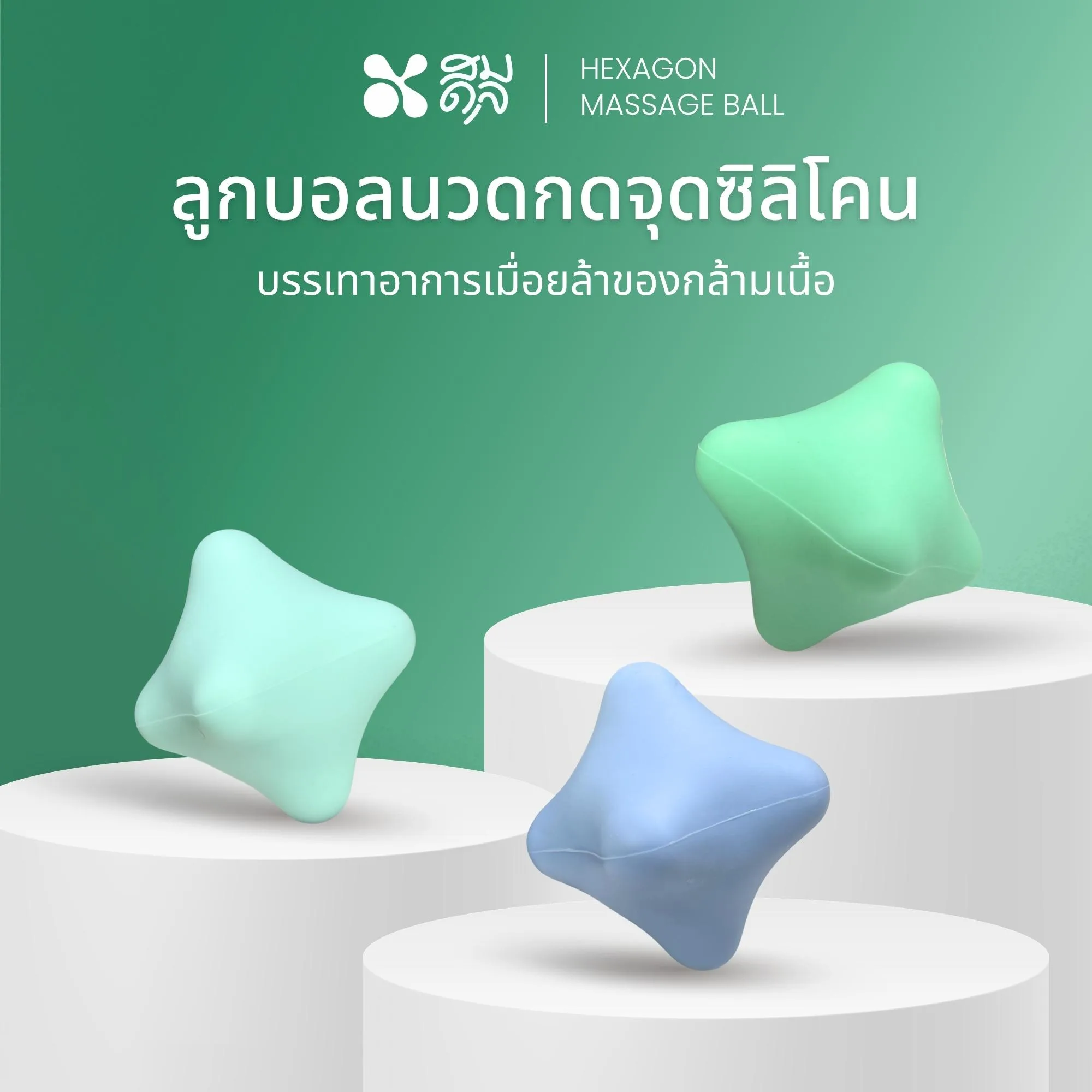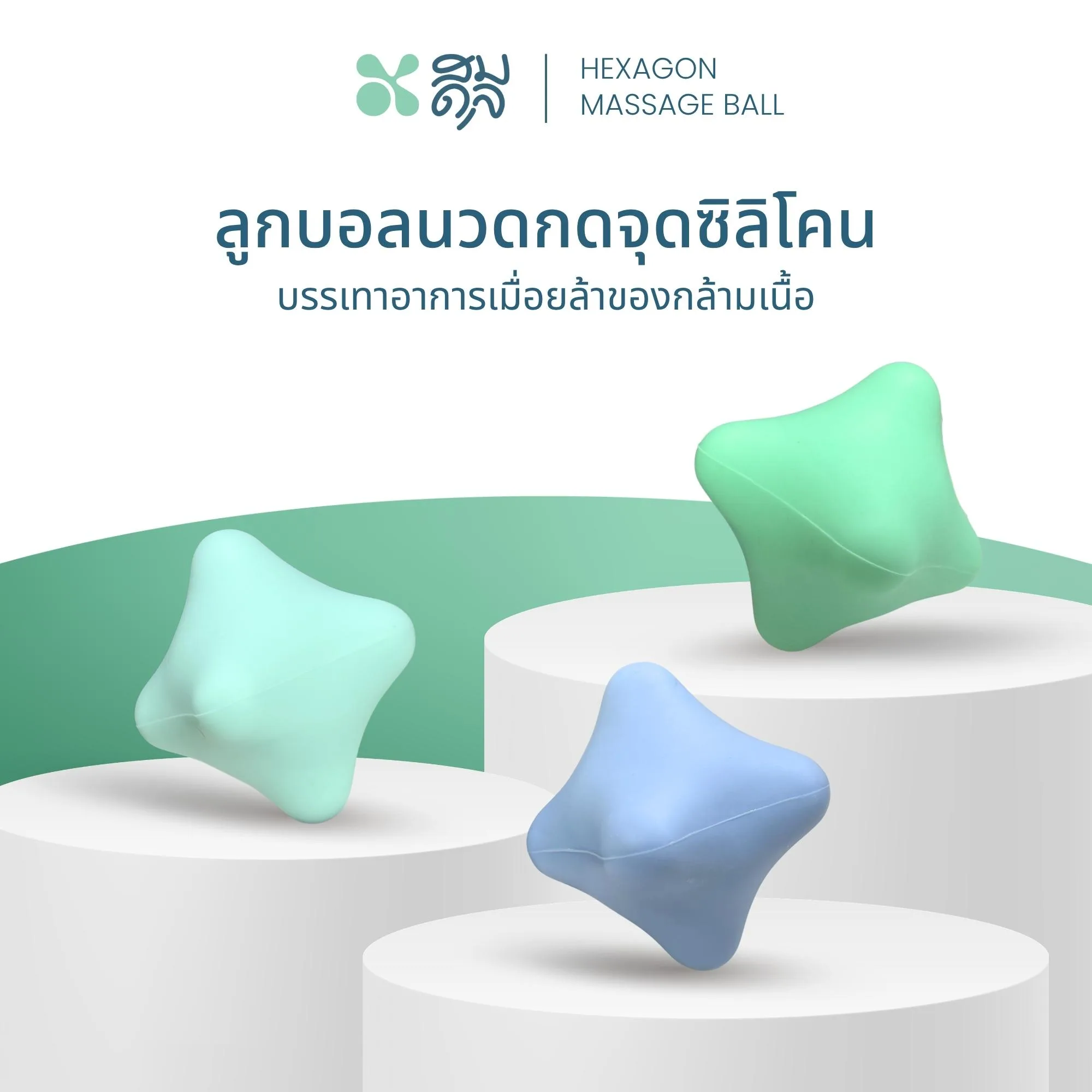 SOMDUL Hexagon Silicone Massage Ball – ลูกบอลนวดกดจุดดีไซน์ทรงหกเหลี่ยม สีสันเรียบหรูสไตล์นอร์ดิก มีเหลี่ยมมุมที่ออกแบบมารองรับสรีระ ช่วยกระจายน้ำหนักและเข้าถึงจุดที่ต้องการได้ดี