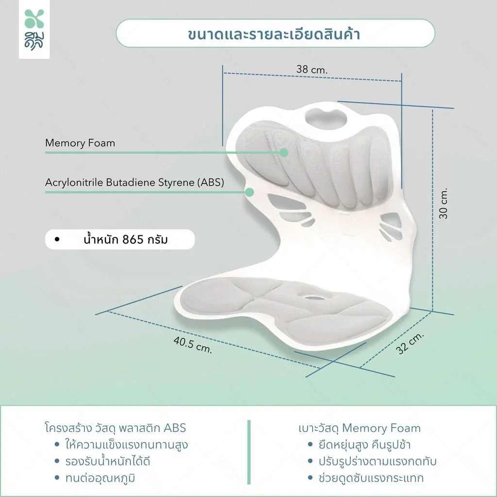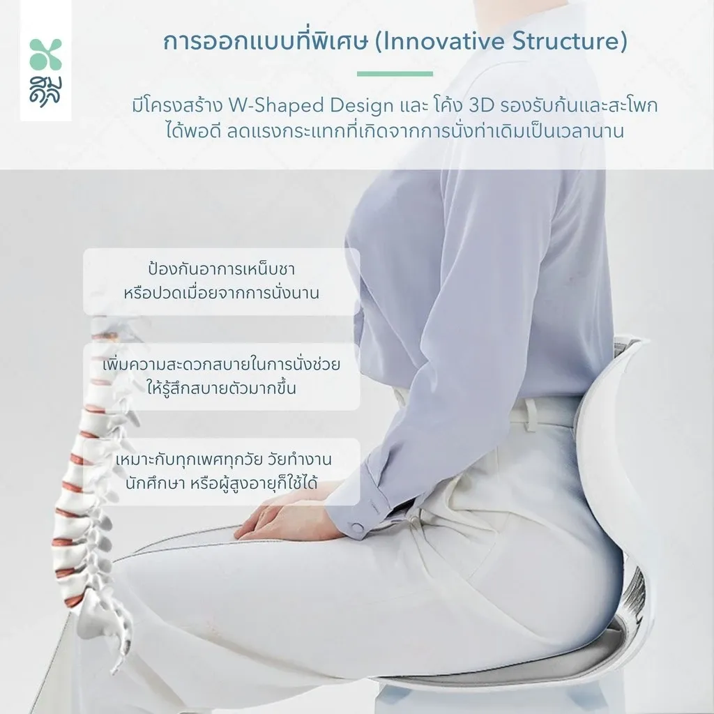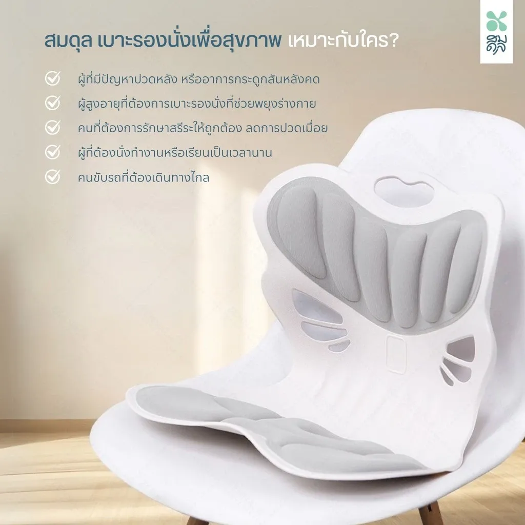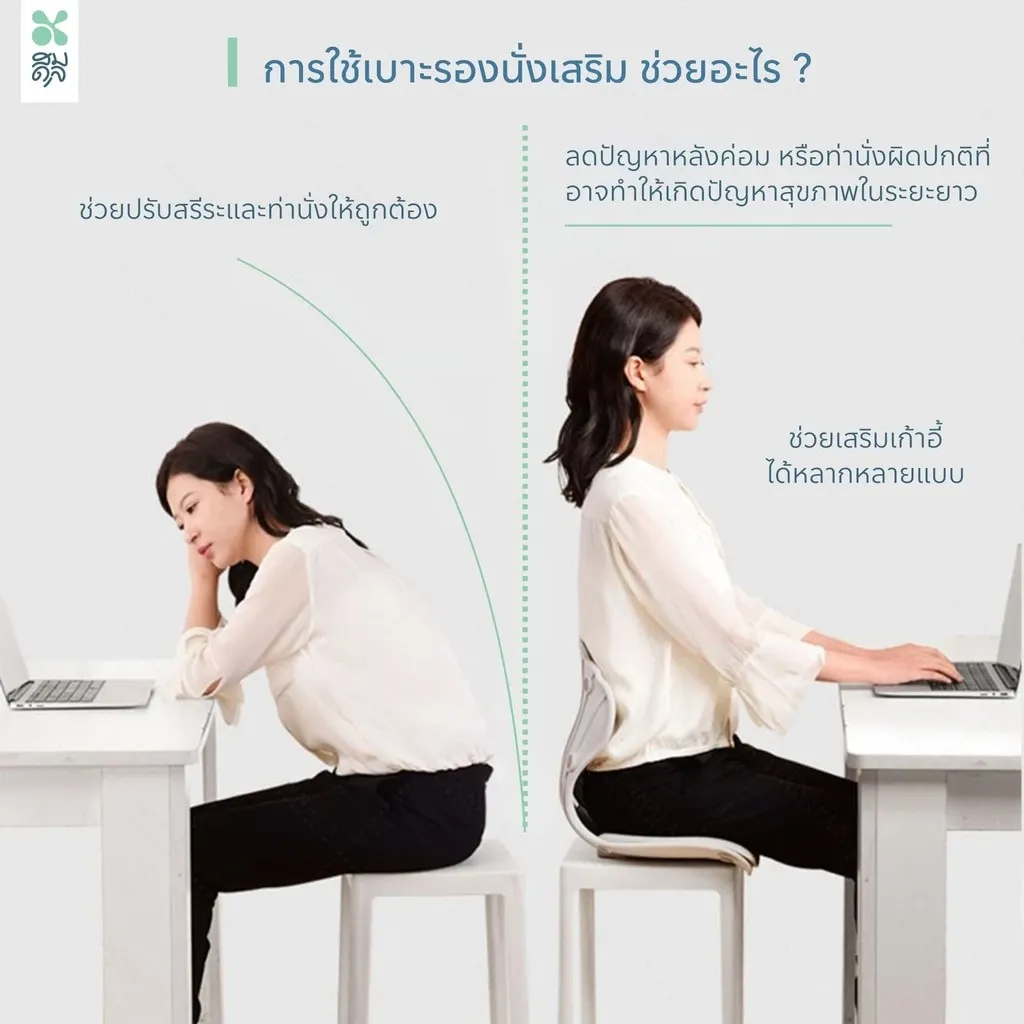 - เบาะรองเพื่อสุขภาพช่วยปรับสรีระและท่านั่งให้ถูกต้อง